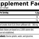 Conjugated Linoleic Acid (CLA) is a naturally occurring fatty acid shown to be useful in supporting normal fat metabolism, healthy blood sugar metabolism, and a normal inflammatory response.* CLA also has strong antioxidant properties.* This product is a rich source of CLA, standardized to contain a minimum 78% conjugated linoleic acid as cis-9, trans-11, trans-10, and cis-12 isomers in a 50:50 ratio.