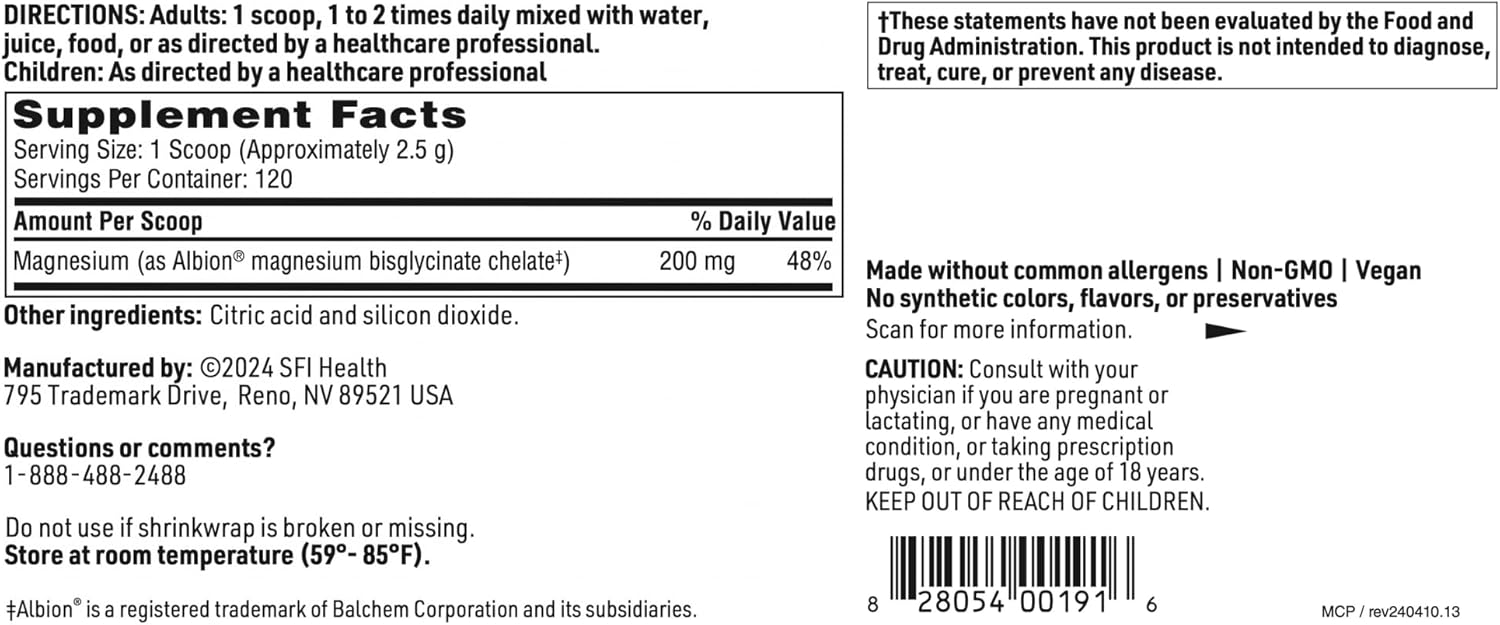 | Magnesium (as Albion® magnesium bisglycinate chelate‡) | 200 mg | 48% |