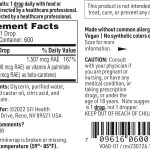 | Vitamin A (99.5% (1,500 mcg RAE) as vitamin A palmitate and 0.5% (7 mcg RAE) as beta-carotene) | 1,507 mcg RAE | 167% |