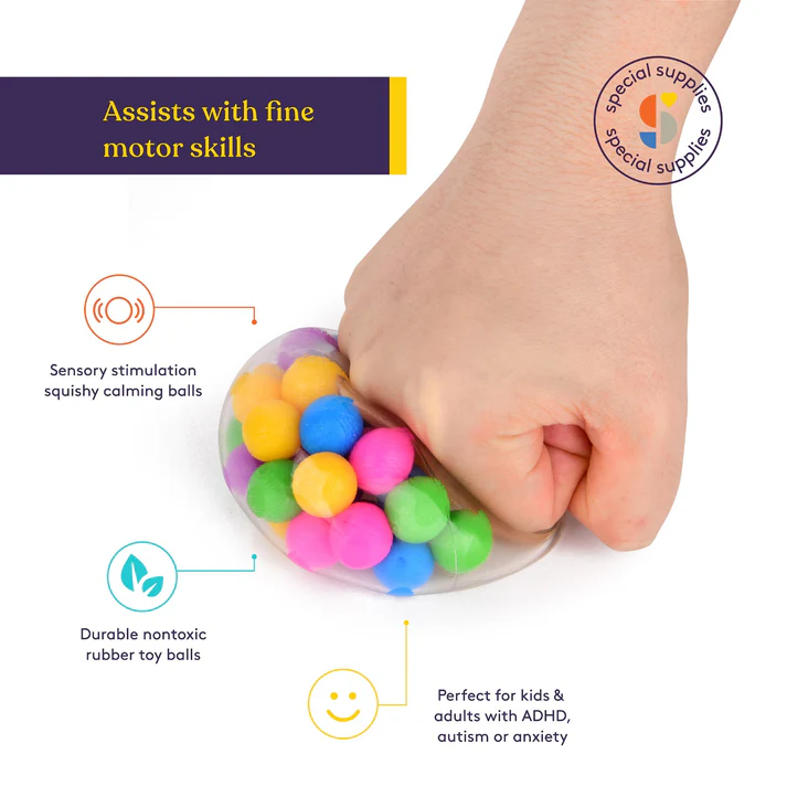 Bring calm and focus to busy hands with this colorful, gel-filled stress ball. Designed for squeezing and tactile play, it’s great for helping kids relax and stay engaged—especially kinesthetic learners.