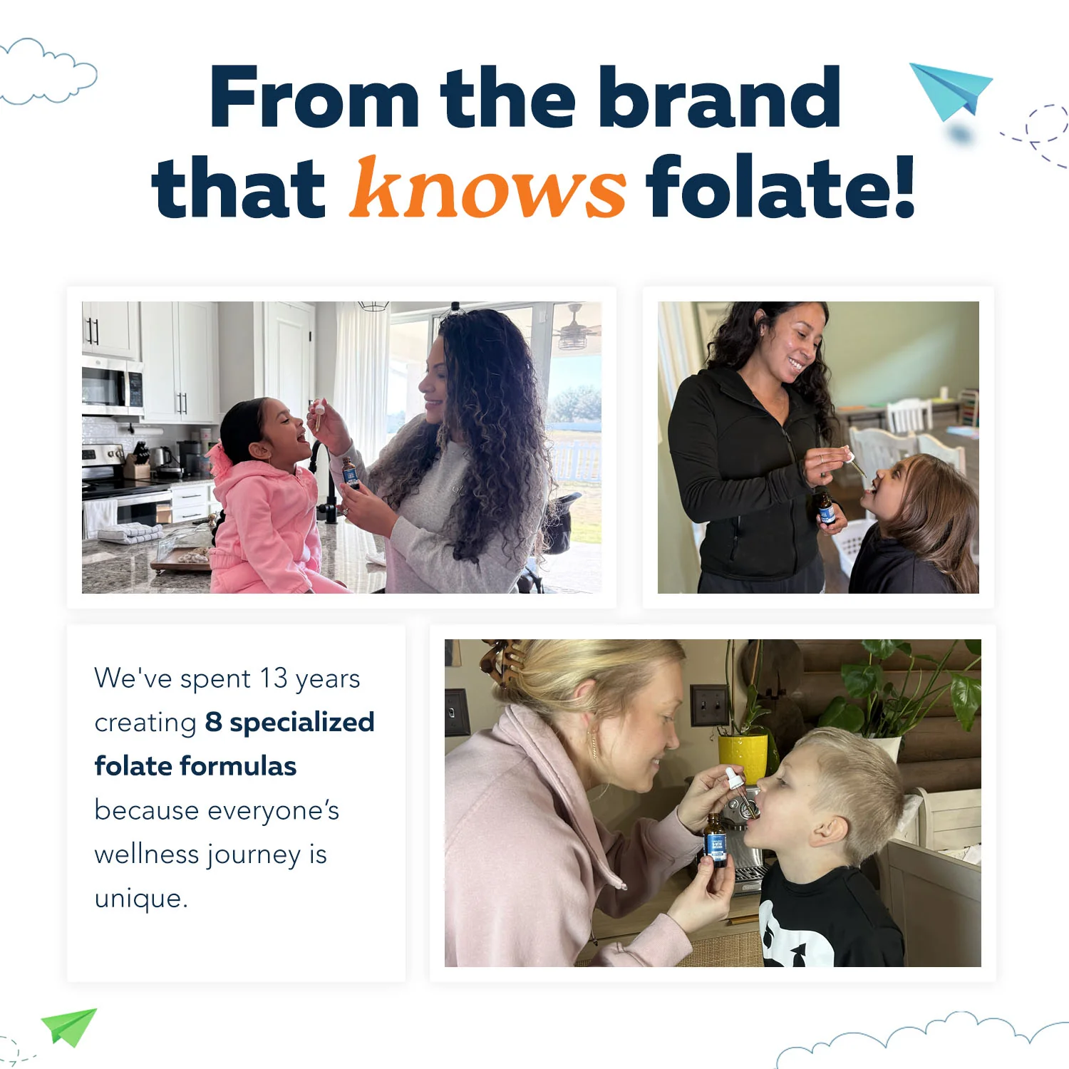 This supplement is ideal for parents looking for clean, flexible, and effective folate support to help their child’s focus, mood, development, and overall wellness.